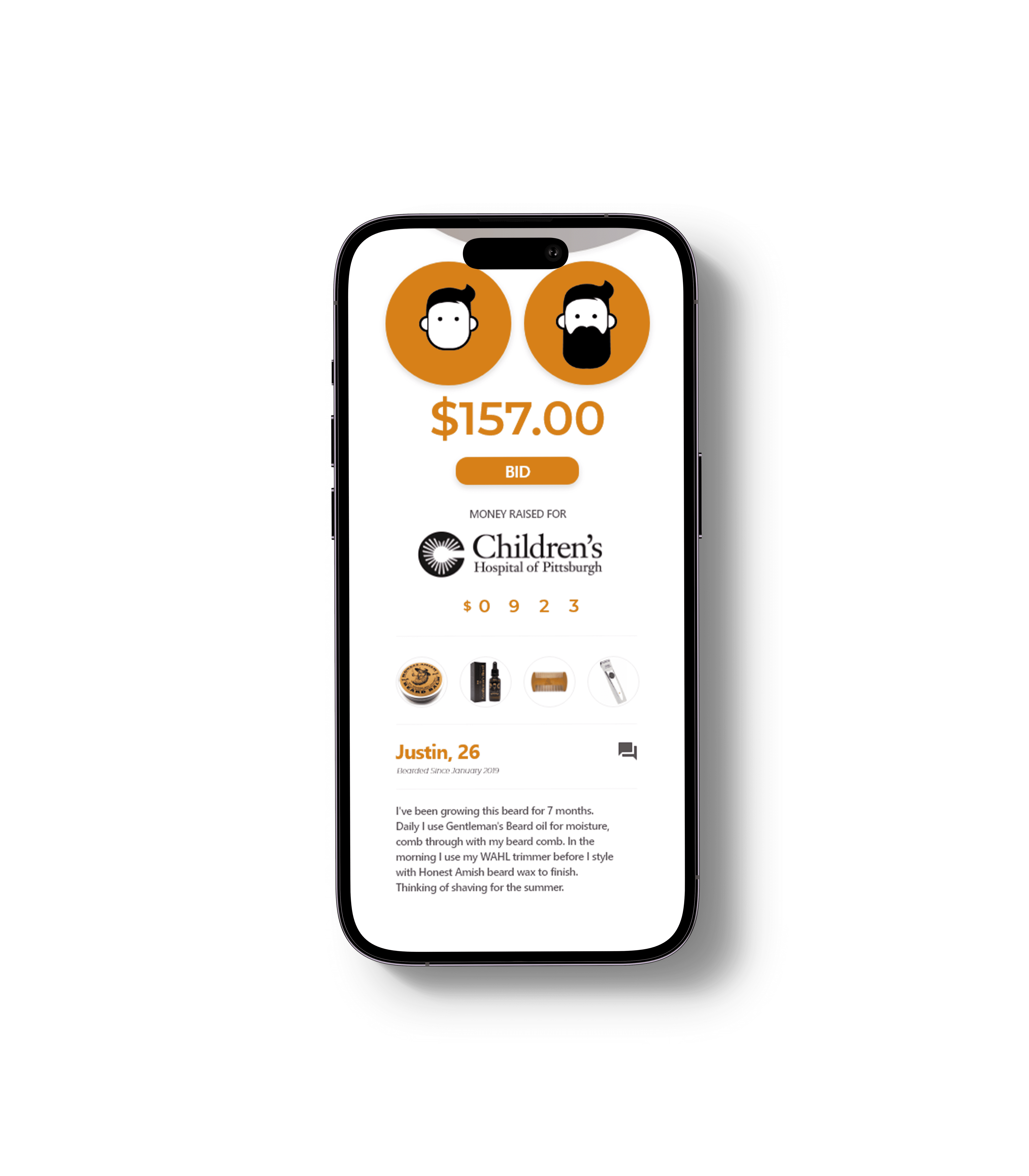 Beard bidding profiles over a way to engage with other beards-men looking to raise money for a charity that matters to them. Ability to add a vote to shave or not-shave a beard along with monetary donation button. Scroll down to reveal charity they are sponsoring, their favorite products and a short bio on what kind of beards-men they are!